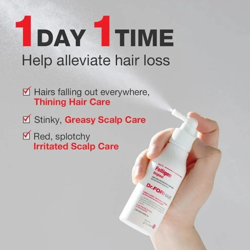 هذا العلاج للشعر وفروة الرأس غني بـ 50,000 جزء في المليون من مركب فوليجين (يحتوي على البيوتين، والأدينوزين، والسيراميد NP، ومستخلصات نباتية متنوعة مثل مستخلص فاكهة السيرولاتا) لتغذية فروة الرأس بعمق وتعزيز صحة الشعر. يعمل البانثينول، والبروبانديول، والألانتوين في هذا المزيج على تهدئة فروة الرأس وتخفيف تساقط الشعر.