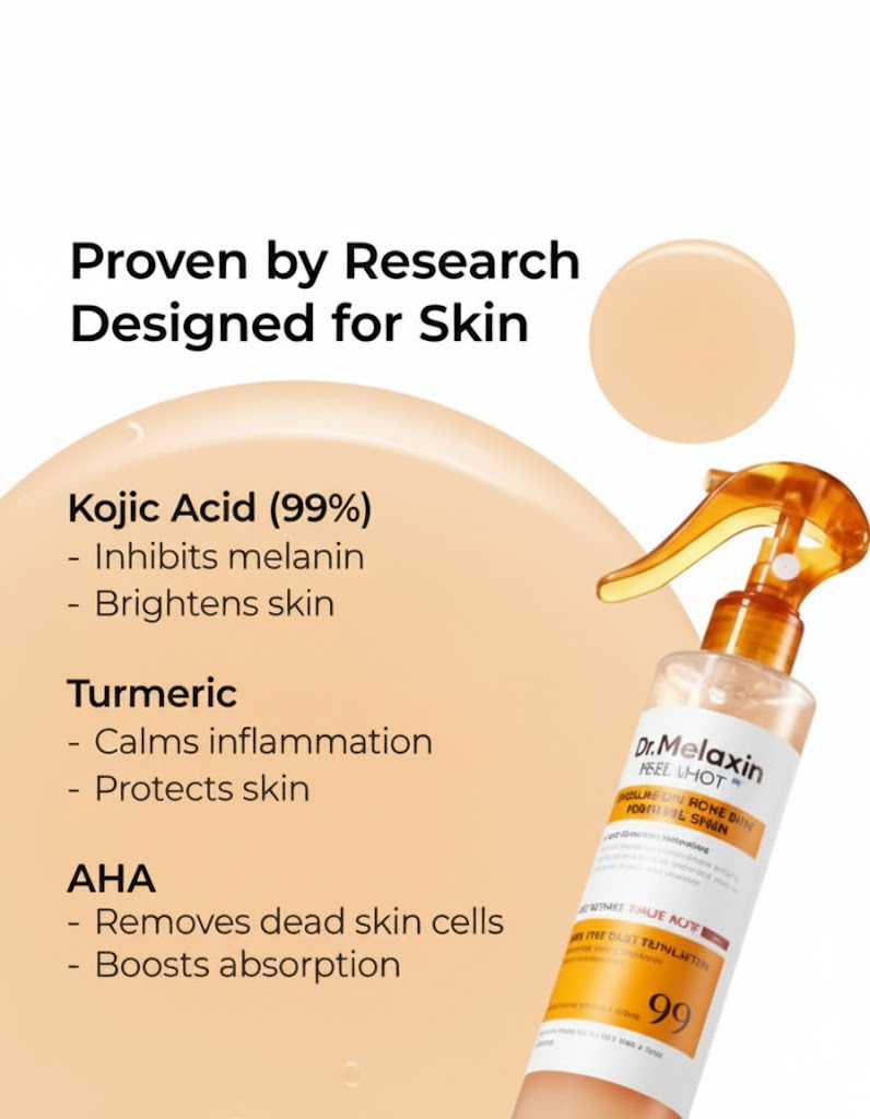 غني بأحماض ألفا هيدروكسي (AHA) وأحماض بولي هيدروكسي (PHA) والكركم، يُقشر بلطف خلايا الجلد الميتة ويُحسّن ملمس البشرة.